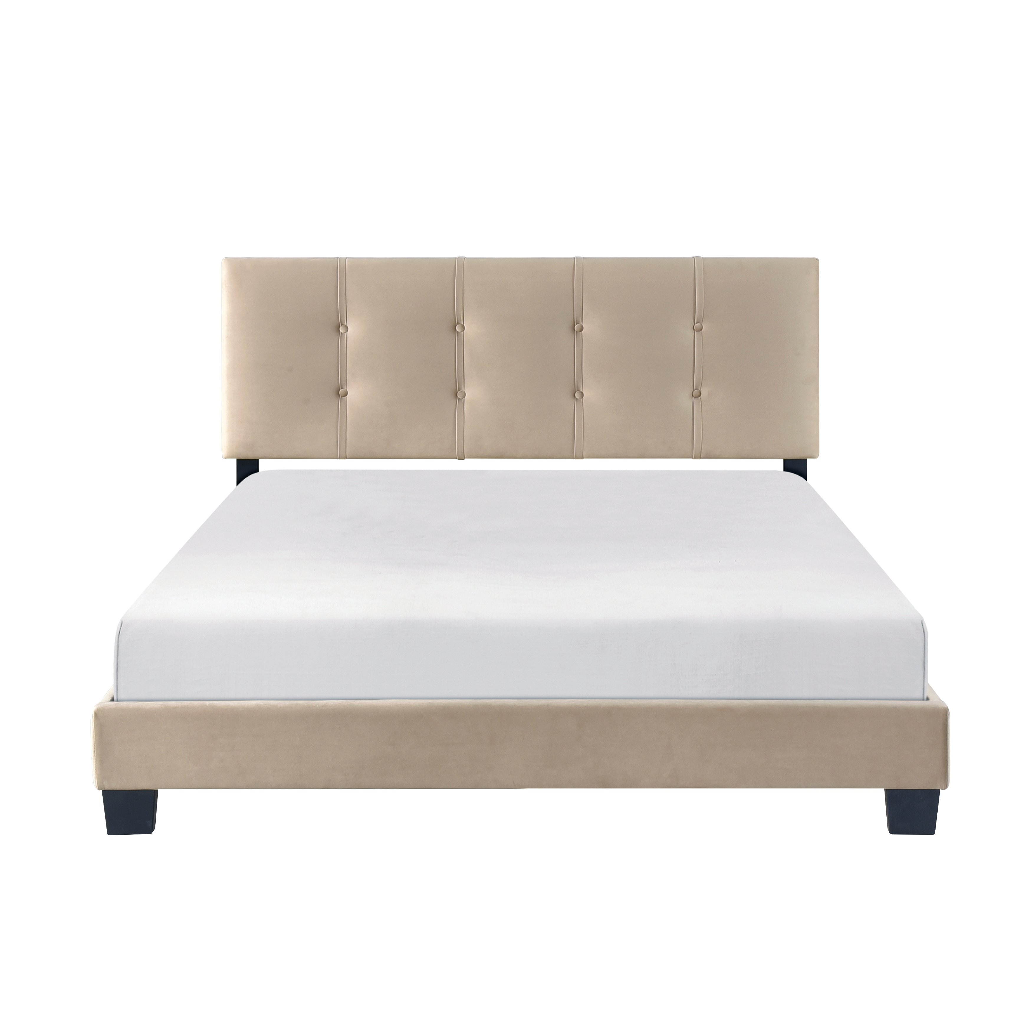 Home > 1pc Queen Platform Bed Light Brown Velvet Upholstered Adjustable Height Headboard Button Tufted Solid Wood Bedroom Furniture