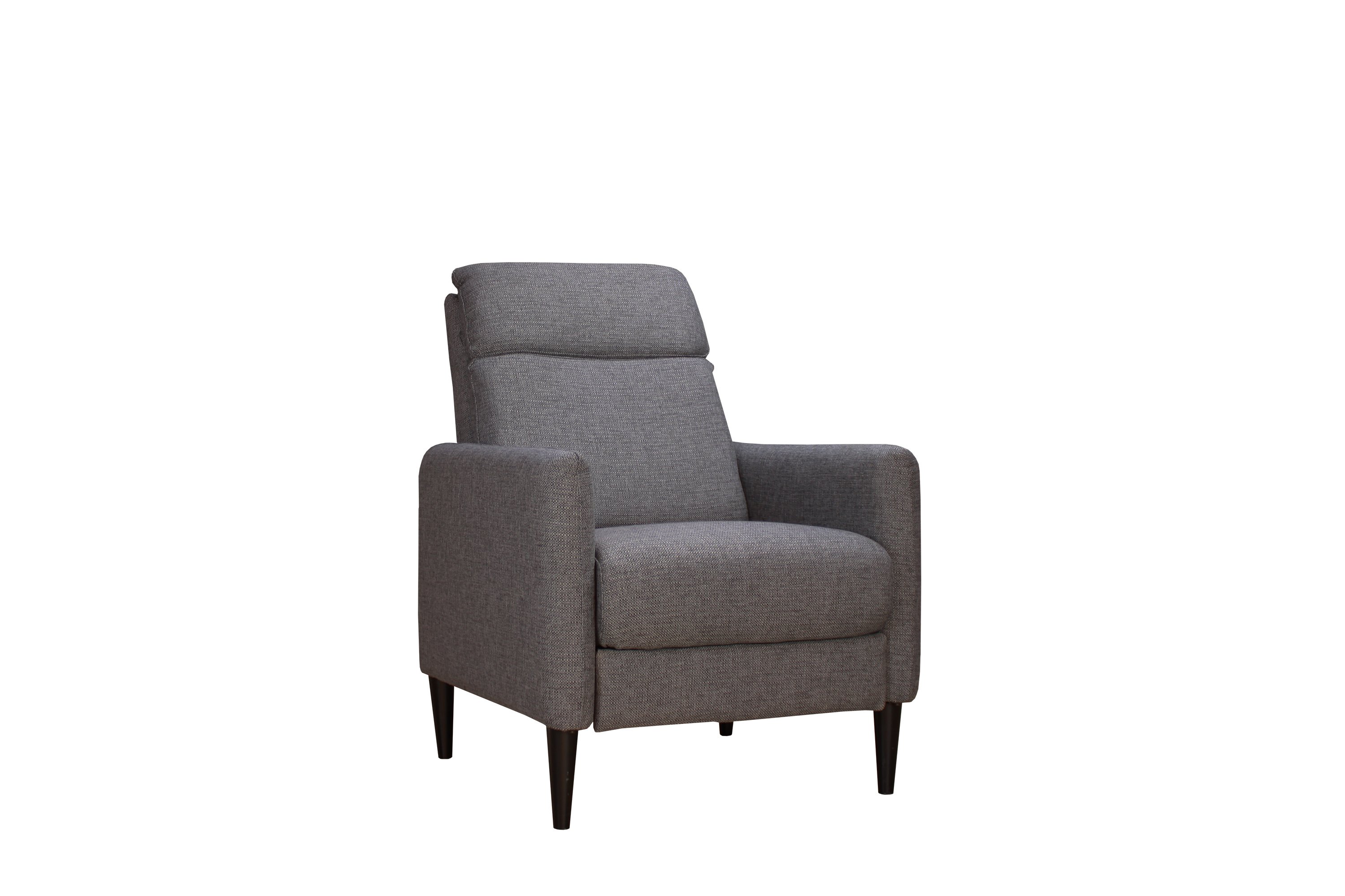 With well tailored and comfortably padded, the Molson Push Back Recliner Chair is designed to correlate with an array of modern styled sofas or can stand alone as an individual statement piece to be included in any environment. Like all of our upholstery, the Molson Push Back Recliner Chair is created by the work of a team of talented stylists and designers. Our products are crafted with the finest materials for long lasting quality and comfort. The durable trend-setting brick color cover completes this fashion forward look. It uses your own body weight to recline to two different positions. Comfortable and on trend, the Molson Push Back Recliner Chair offers high style at a value price.* Hardwood kiln dried frame* Solid wood legs with Espresso Finish * High-gauge sinuous spring suspension* Spring coil seat cushioning with 2.5 lbs HR Foam to provide extra comfort* Fiber fill channeled back cushions* Upholstered by hand to create precise tailoringReclines to two positions - for reading and watching TV and for relaxing