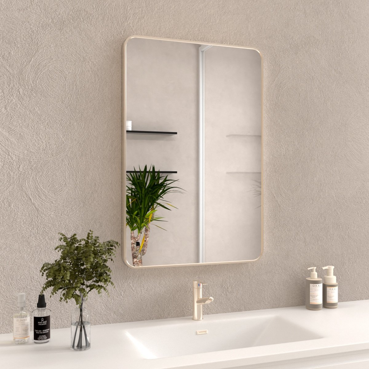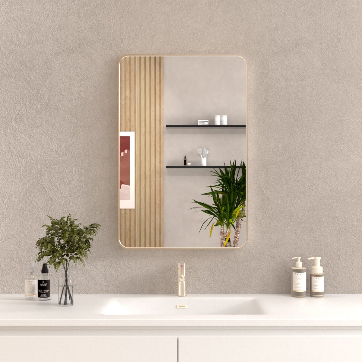 Home > 24x36 In. Aluminum Framed Rounded Rectangle Bathroom Wall Mirror, Brushed Nickel Bathroom Vanity Mirror Farmhouse, Anti-Rust, Tempered Glass mirrors