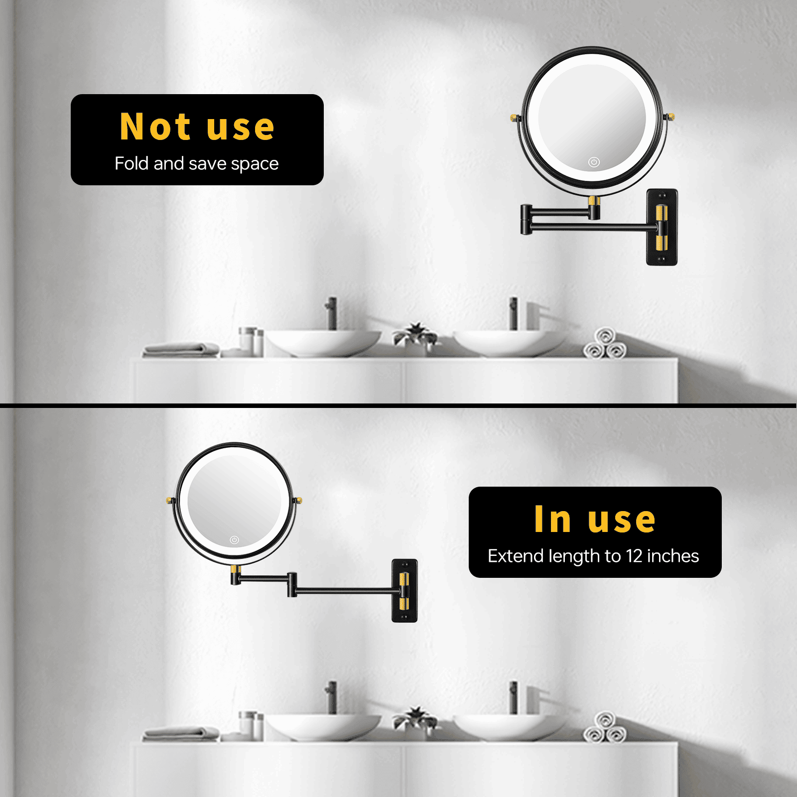 360 DEGREE SWIVELING DESIGN: This mirror features a 360-degree swivel and extension arm, which allows you to easily adjust and fix the angle of the mirror to meet different usage needs. You can freely adjust the angle and position of the mirror to enjoy a more convenient and comfortable using experience.