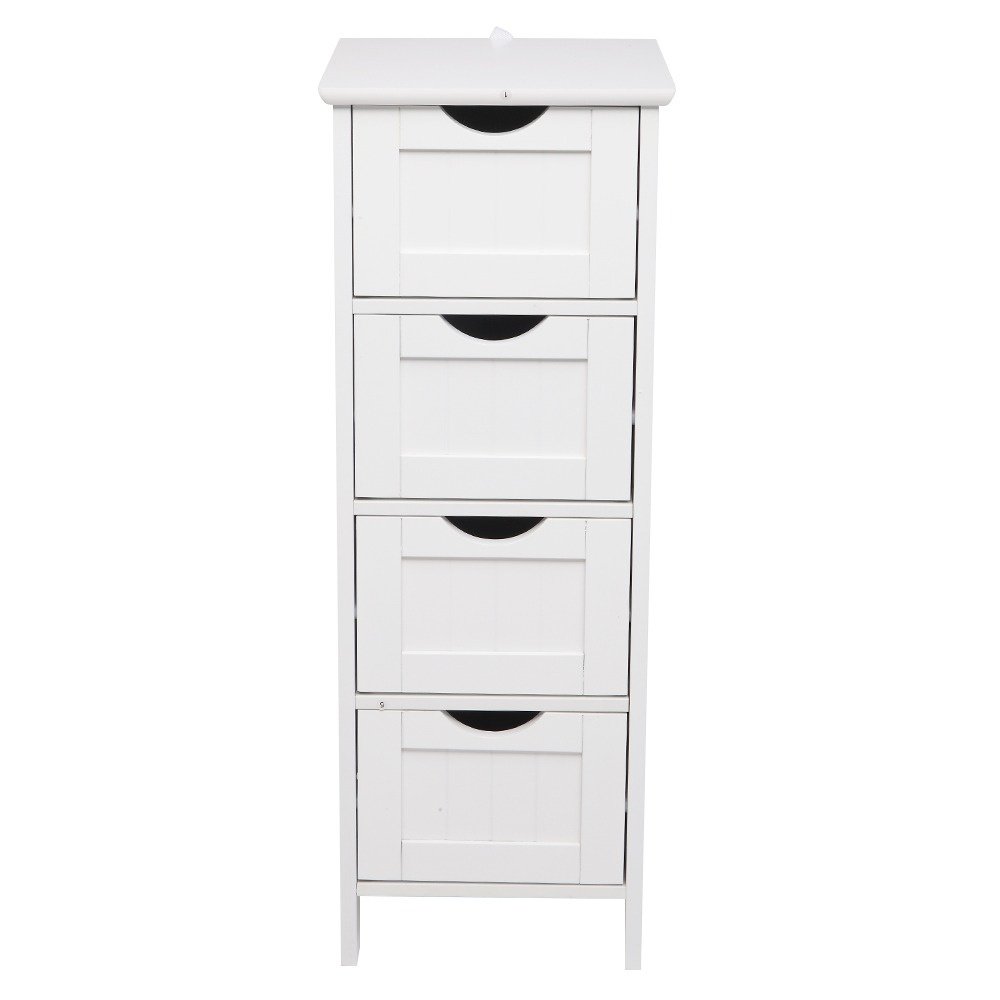 Each of the four drawers slides smoothly to provide ample space for storing your everyday essentials — from towels and skincare products to socks and accessories. The cabinet’s solid structure ensures stability, while the included assembly kit makes setup fast and simple. Whether you place it beside the sink, next to your vanity, or in a closet, this storage cabinet adds a touch of order and charm to any space.