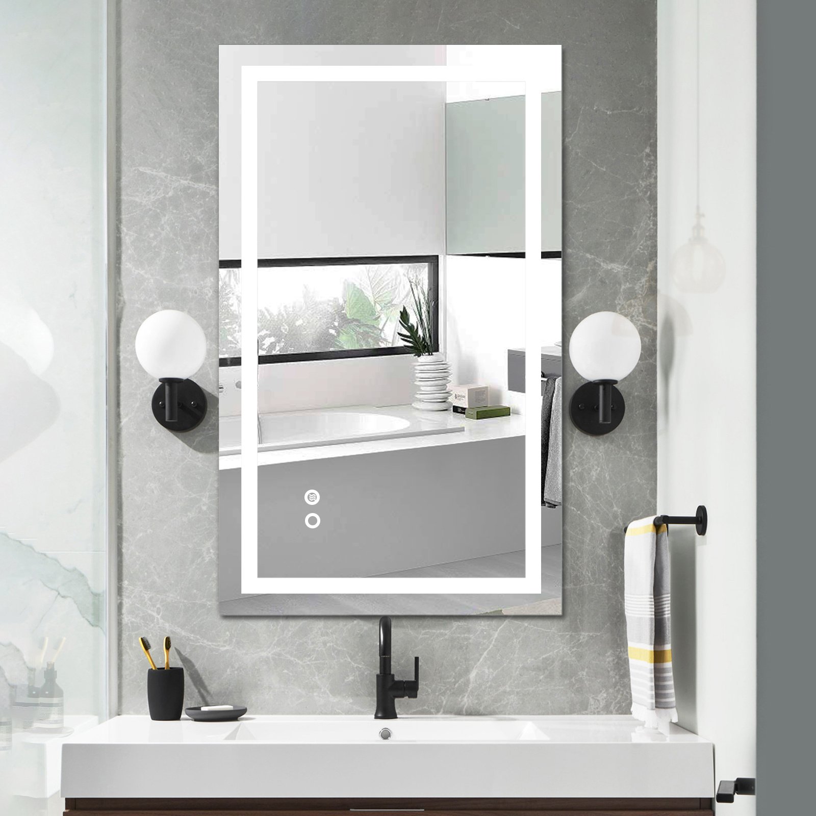 LED Mirror with Touch Buttons control; Anti-Fog LED bathroom Vanity Mirror