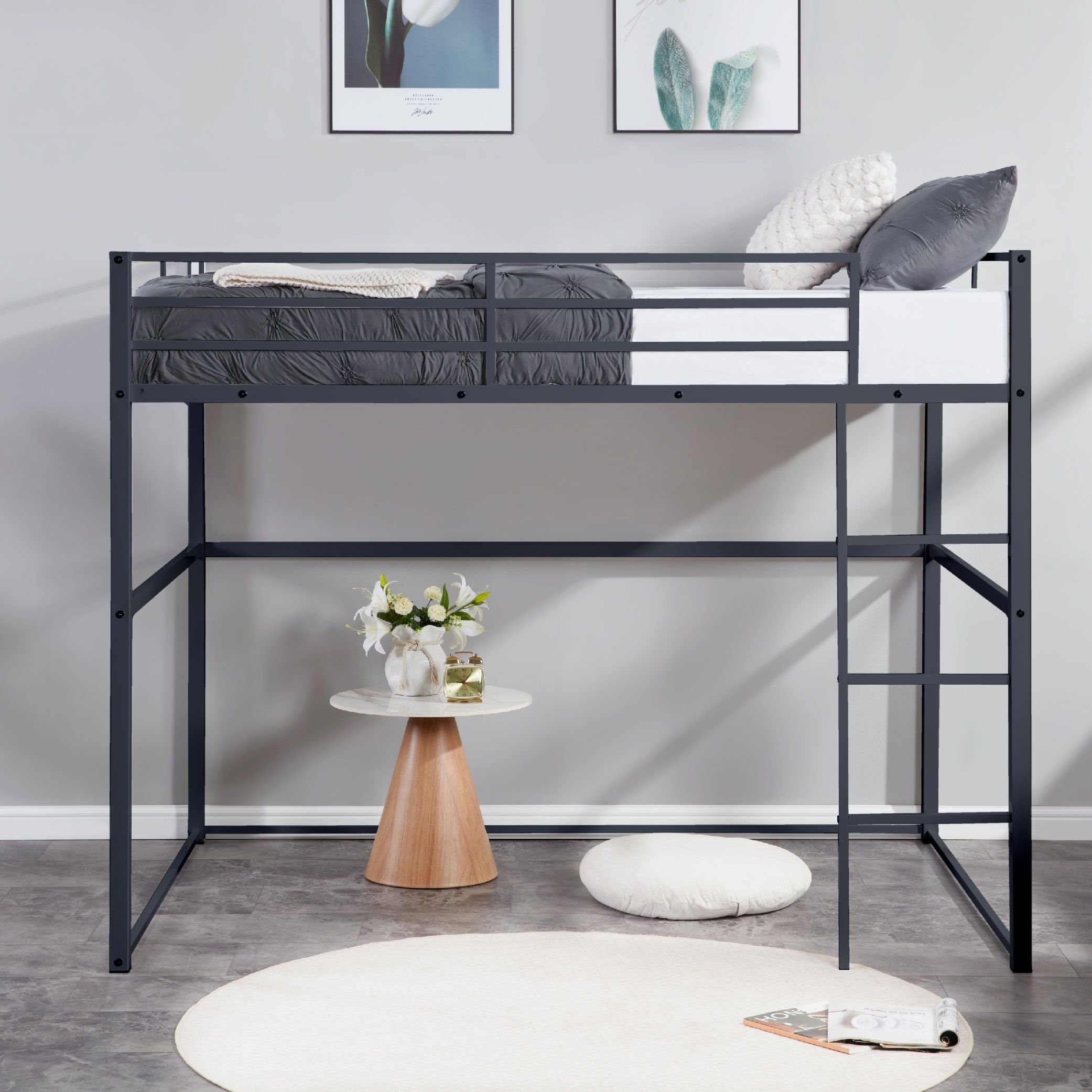 Metal Loft Bed Twin Size, Loft Bed Frame with Safety Guard Rails & Flat Ladder, Twin Loft Bed for Kids Teens Adults, Black Metal Loft Bed Twin Size, Loft Bed Frame with Safety Guard Rails & Flat Ladder, Twin Loft Bed for Kids Teens Adults, Black Metal Loft Bed Twin Size, Loft Bed Frame with Safety Guard Rails & Flat Ladder, Twin Loft Bed for Kids Teens Adults, Black