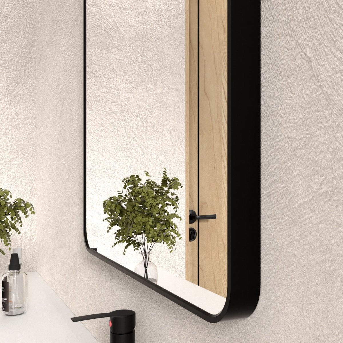 Home > 24x36 In. Aluminum Framed Rounded Rectangle Bathroom Wall Mirror, Matte Black Bathroom Vanity Mirror Farmhouse, Anti-Rust, Tempered Glass mirrors