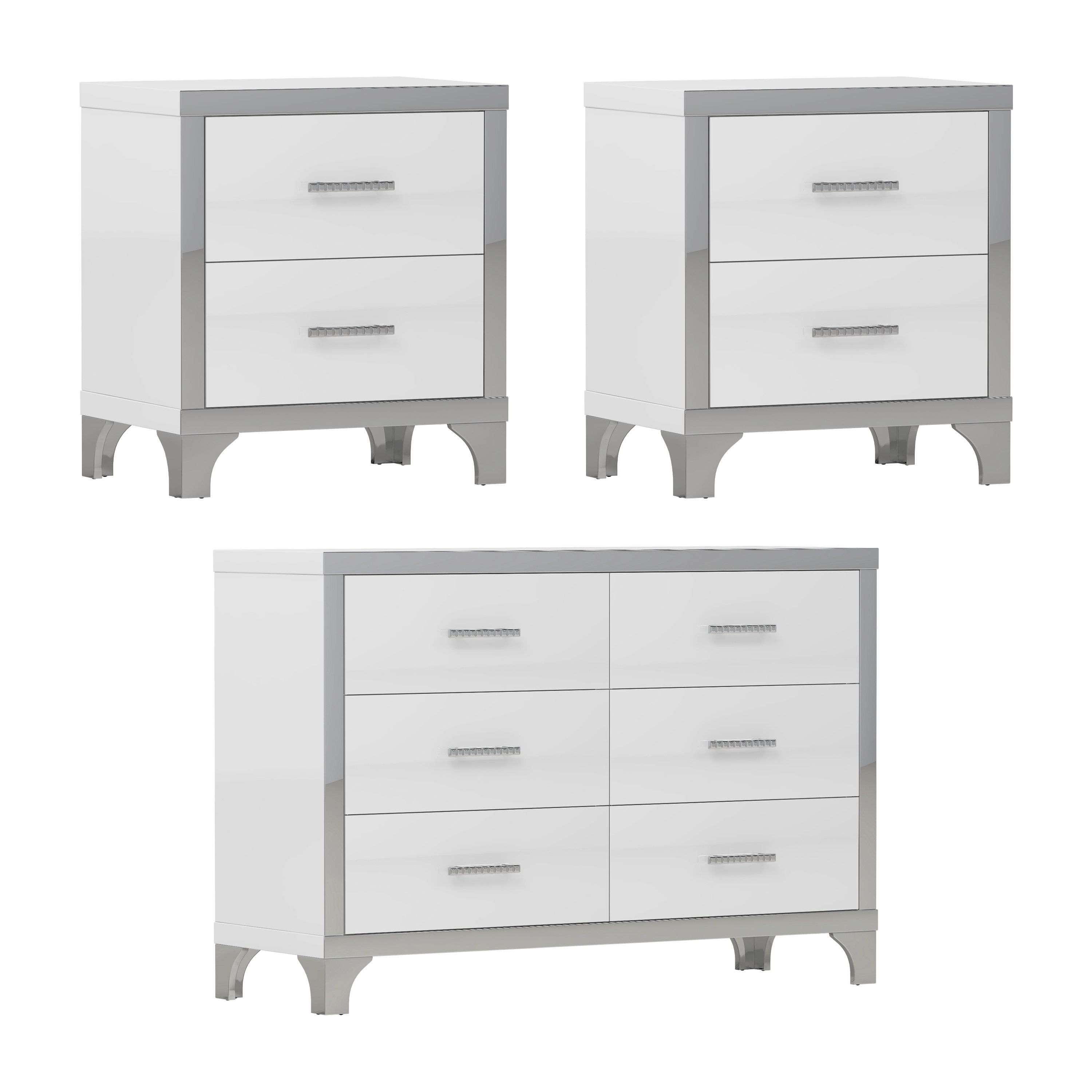 3-Pieces Sets,Dresser and Two Nightstands with Metal Handles and Mirror Decoration, Elegant
