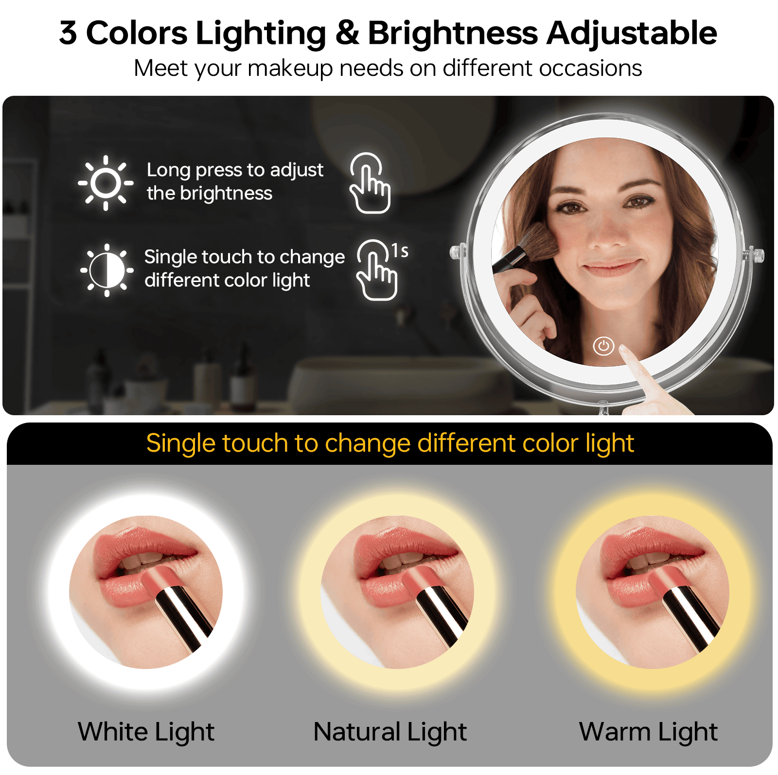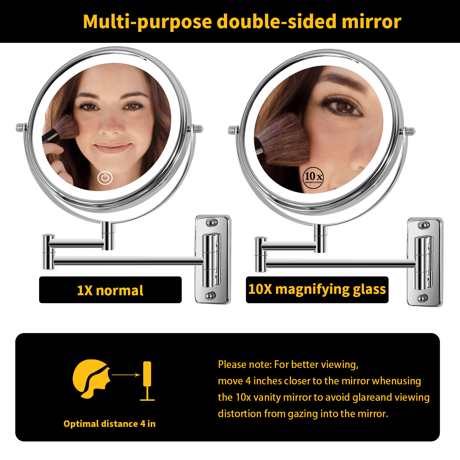 Home > 8 Inch Wall-Mounted Makeup Mirror, Double Sided 1x/10x Magnifying Makeup Mirror, 3 Colour Lights Touch Screen Dimmable Bathroom Mirror