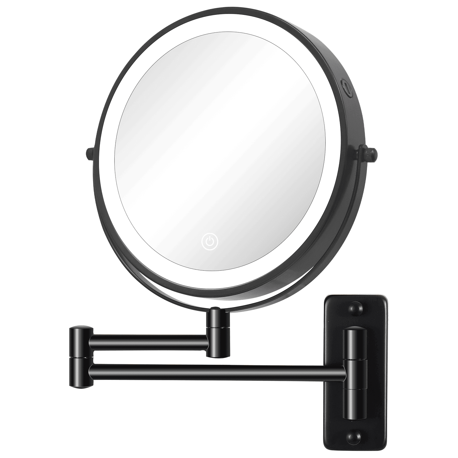 360° Swivel and Extendable Metal Arm: This makeup mirror is designed with an extending arm that you can smoothly extend and fold,and the long arm can be adjusted up and down to suit people with different needs.The max lenghs of extension arm is 14.7".