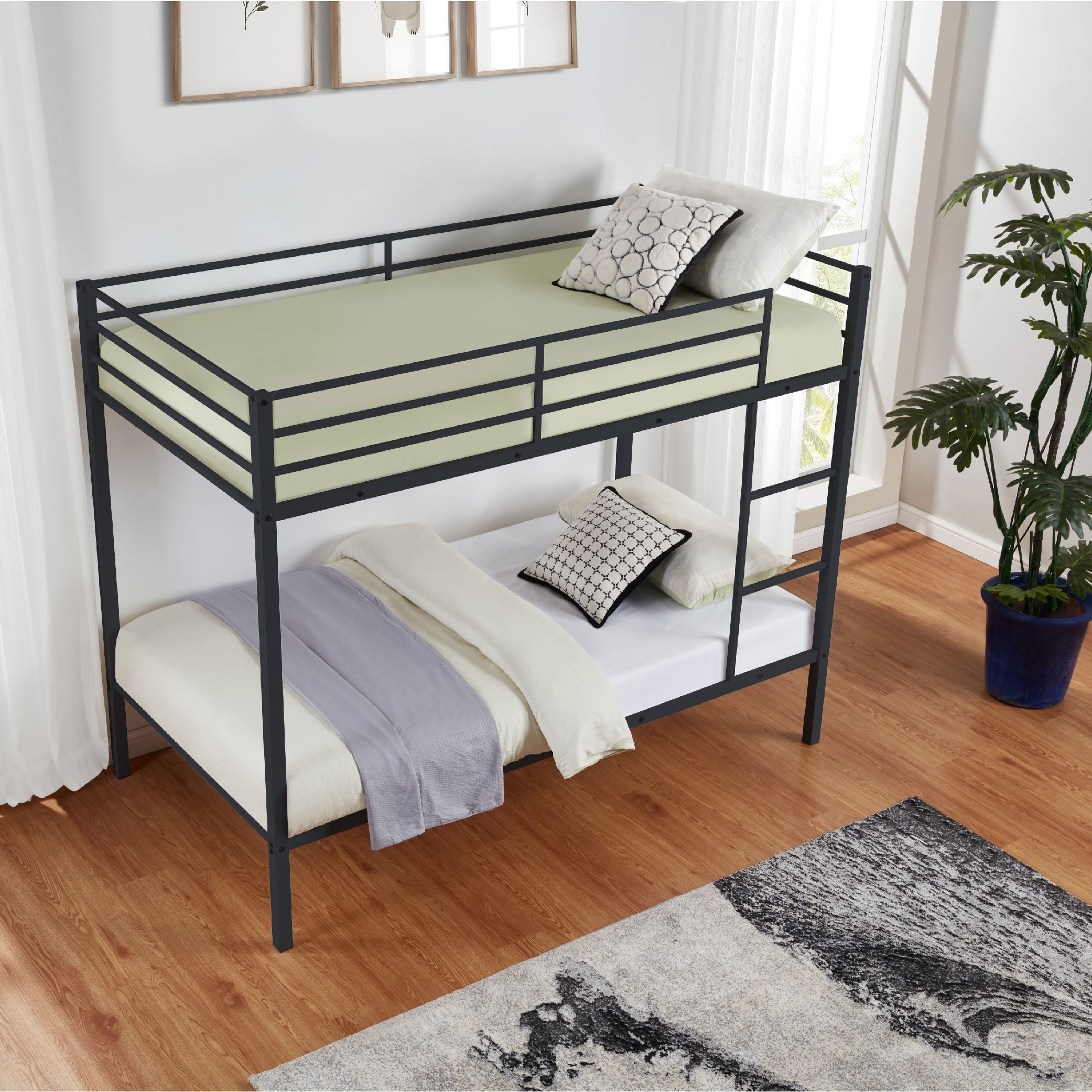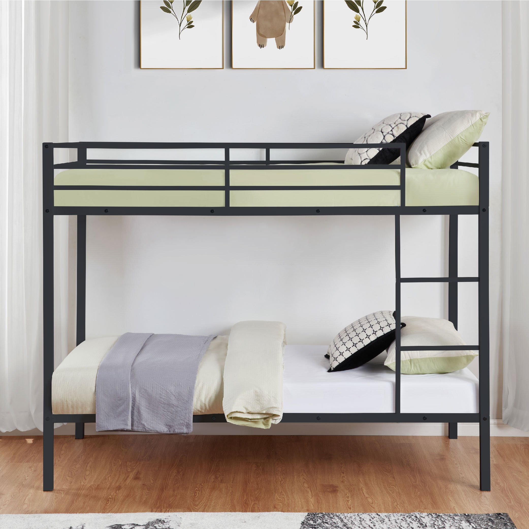 Durable Heavy-Duty Metal Frame:Constructed with a high-quality metal frame, this bunk bed provides sturdy support. The heavy-duty solid steel slats are naturally integrated into the frame, while the premium powder-coated metal surface offers a smooth, long-lasting finish that protects against corrosion and rust. Weight capacity