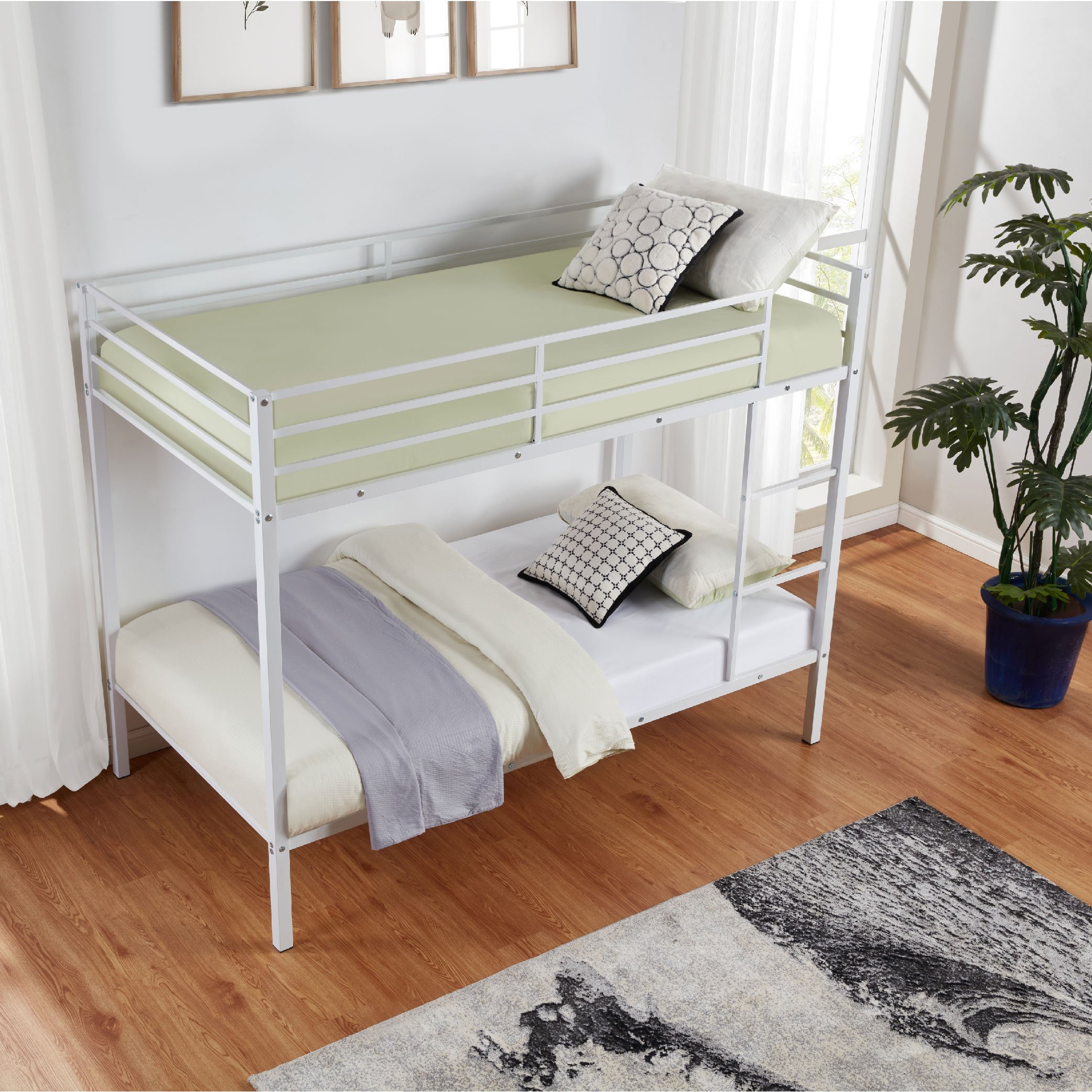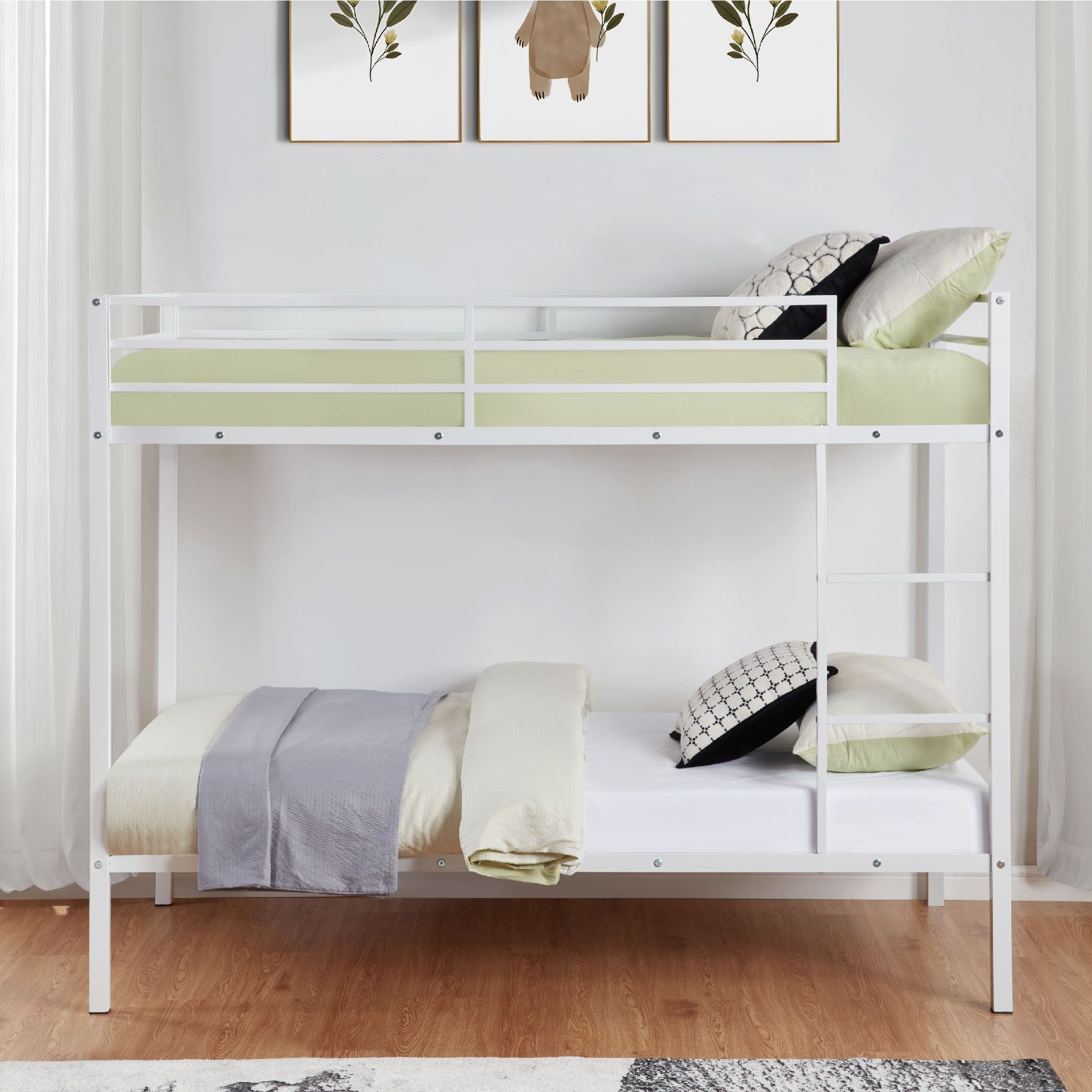 Durable Heavy-Duty Metal Frame:Constructed with a high-quality metal frame, this bunk bed provides sturdy support. The heavy-duty solid steel slats are naturally integrated into the frame, while the premium powder-coated metal surface offers a smooth, long-lasting finish that protects against corrosion and rust. Weight capacity