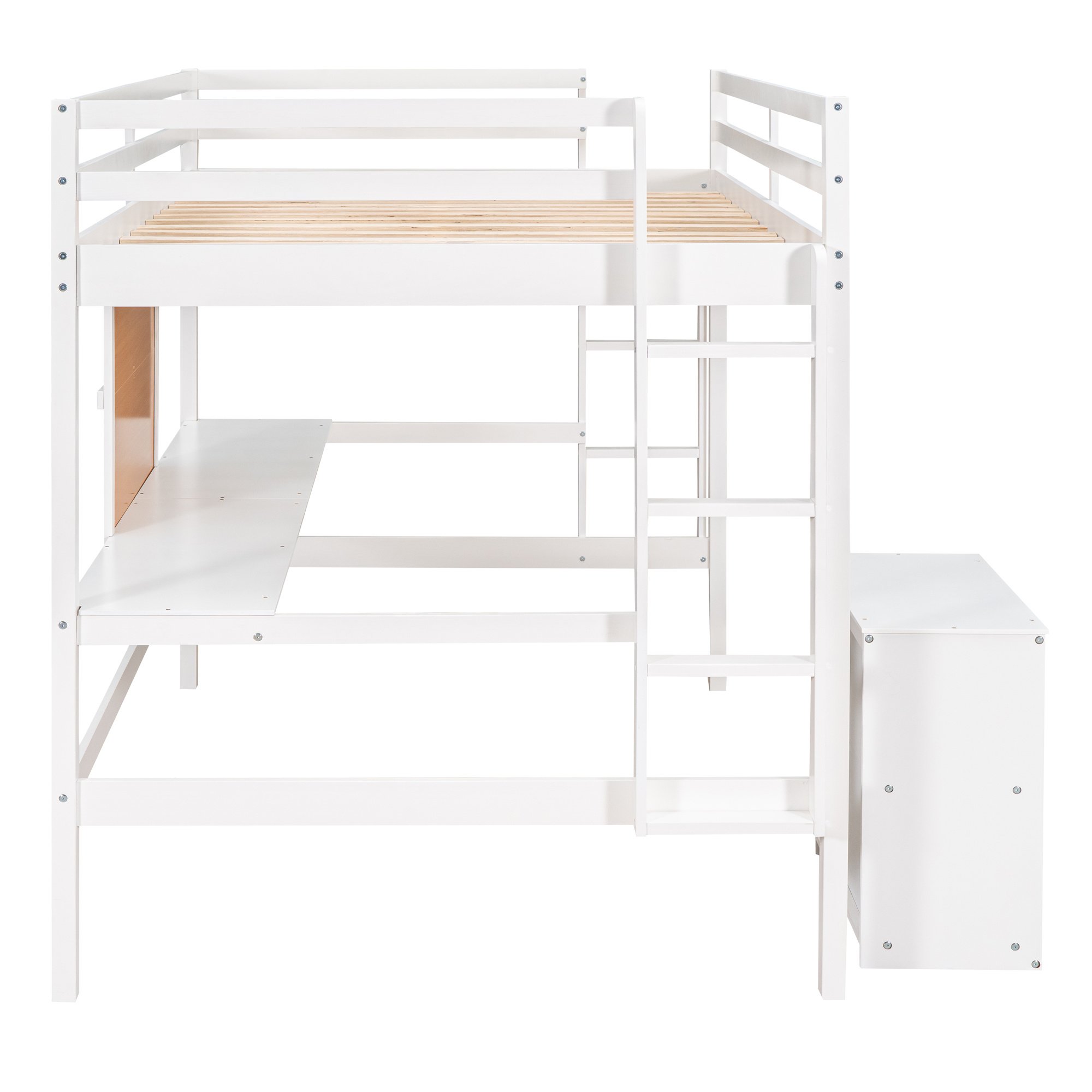 Twin size Loft Bed with Desk and Writing Board, Wooden Loft Bed with Desk & 2 Drawers Cabinet