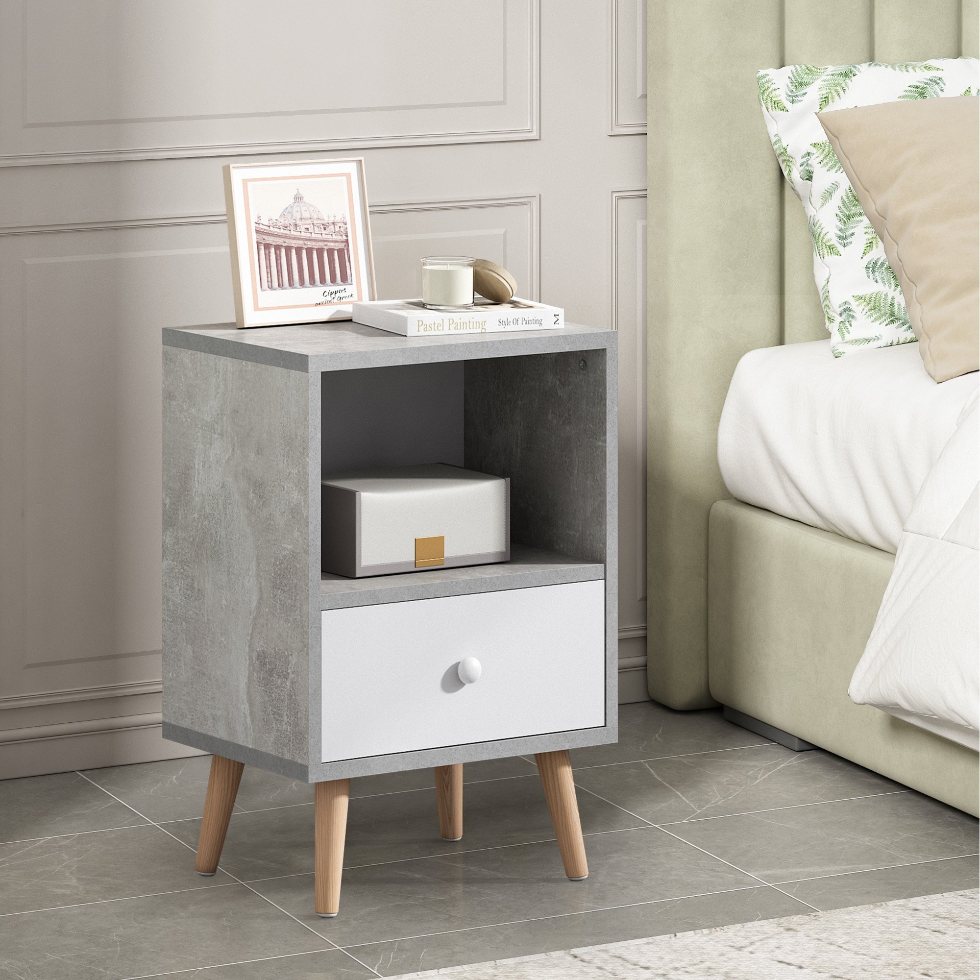[Modern Home Furniture]: This side table with drawer and shelf is not only popular home decor but also a storage addition; which is perfect for your living room; bedroom; and office.