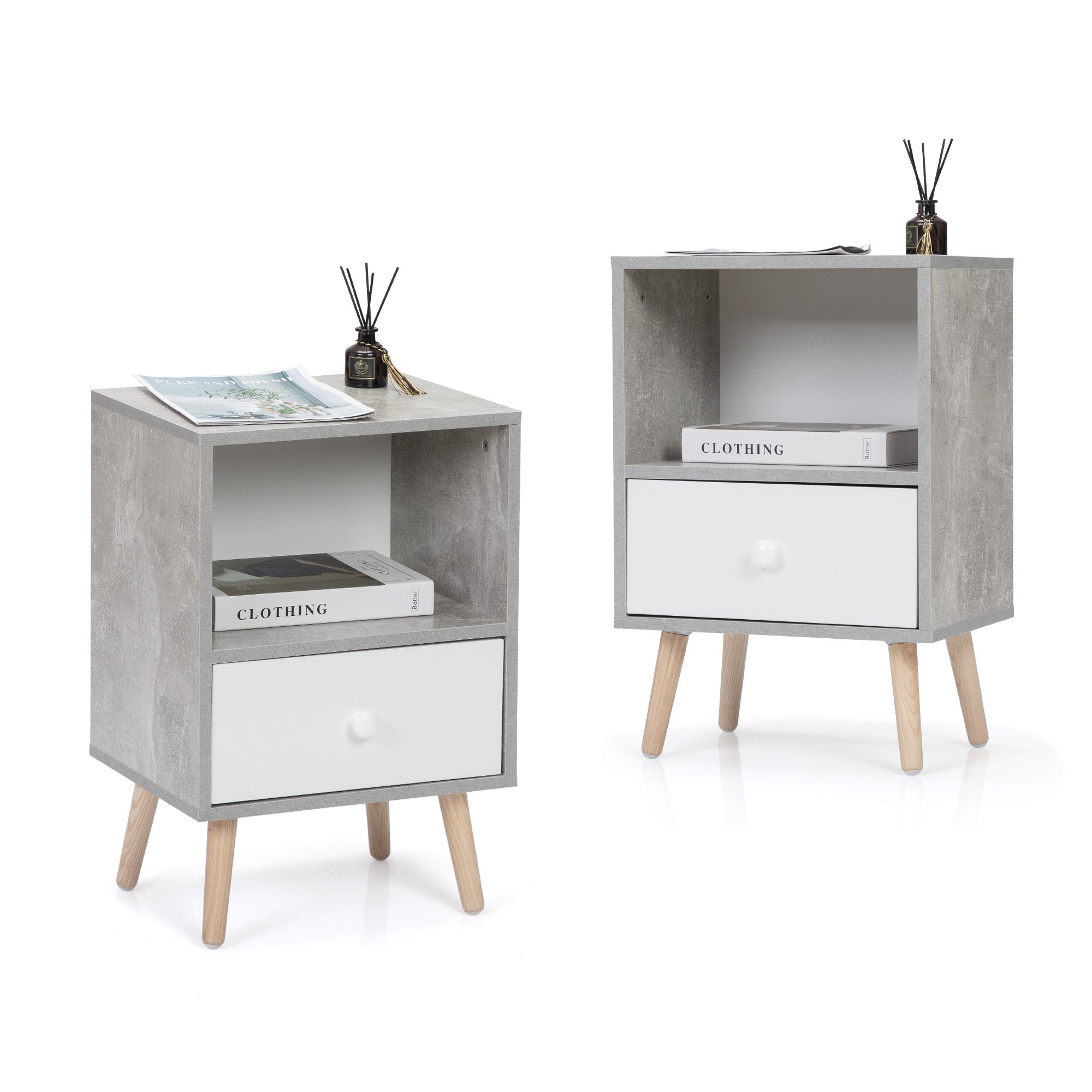 Home > Mid-Century Wood Nightstand Set of 2; Bed Sofa Side Table with Drawer and Shelf; Modern End Table for Living Room Bedroom Office